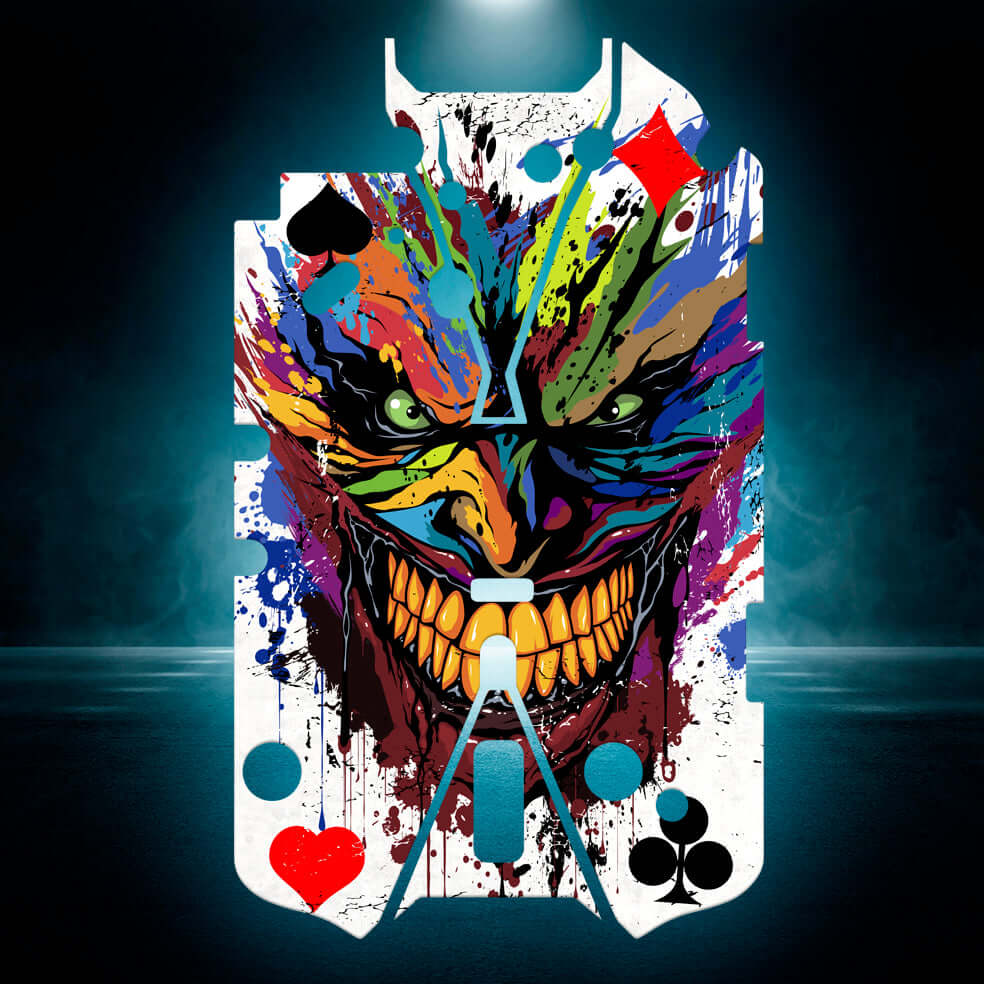 Colorful Joker Card chassis protector skin for ARRMA and Traxxas RC cars, featuring bold artwork and vibrant design.