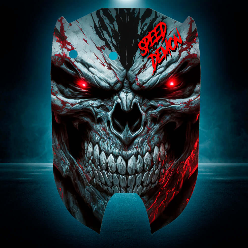 ARRMA Typhon Grom speed demon chassis protector skin with a bold skull design for ultimate RC protection.