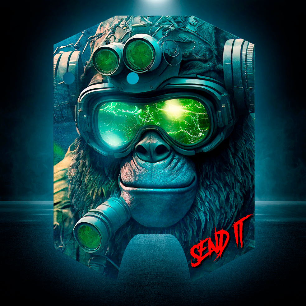 Stylish 'SEND IT APE' design featuring a gorilla in goggles, perfect for customizing your ARRMA GRANITE GROM chassis.