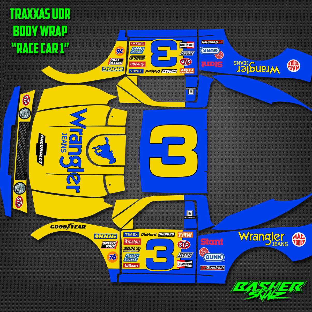 TRAXXAS UDR - "YELLOW/BLUE RACE CAR" BODY WRAP